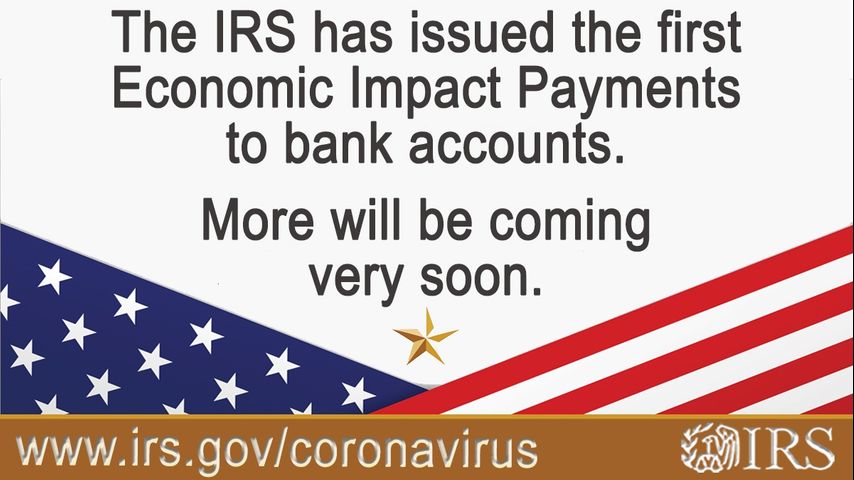 #IRS deposited the first Economic Impact Payments into taxpayers’ bank accounts today. We know many people are anxious to get their payments; we’ll continue issuing them as fast as we can. For #COVIDreliefIRS updates see: https://t.co/hEEWmgHA9V pic.twitter.com/2bSHOTjMAS