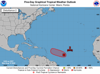 By early next week, forecasters said, conditions are expected to become less favorable for development. It's expected to move northwest at 15 to 20 mph toward the central tropical Atlantic.
