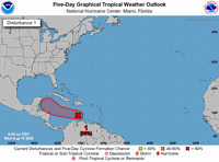 A disturbance in the Caribbean Sea has an 80% chance (high) of developing into a tropical depression within five days, the National Hurricane Center said.