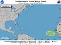 The shaded area on the graphic shows where a storm could develop. It does not indicate a track, which is generally released by the National Hurricane Center once a disturbance has become a depression or is about to be a depression.