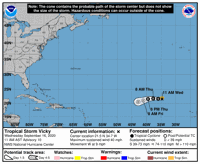 Tropical Storm Vicky is weakening in the Atlantic.