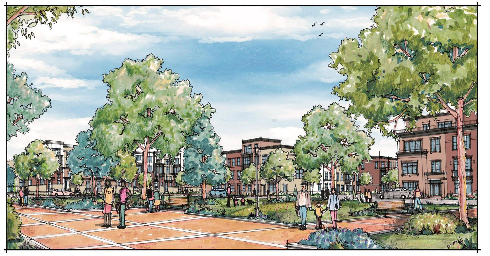 Mercer Crossing will be a mixed-use development including a diverse range of residential, retail, civic, and public open space. The residential component will include townhomes, an array of multifamily offerings, and active adult residences to deliver an innovative continuum of housing choices to assist with the unmet housing needs of the County. A portion of the homes will also be designated as affordable housing. Plans for the property include the preservation of trees and multiple streams running through the property. A large, centrally-located park and shared use trails open to the public will provide extensive open space. In addition, the construction of Russell Branch Parkway will provide for the long-awaited connection of Belmont Ridge Road to Claiborne Parkway, easing traffic on surrounding streets such as Route 7.