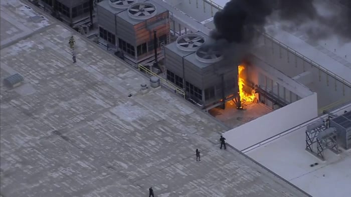 The flames were on the southern side of the roof under one of the large ventilation units. The dark smoke was visible from Miami Beach City Hall and from the parking lot of the Fillmore Theater.